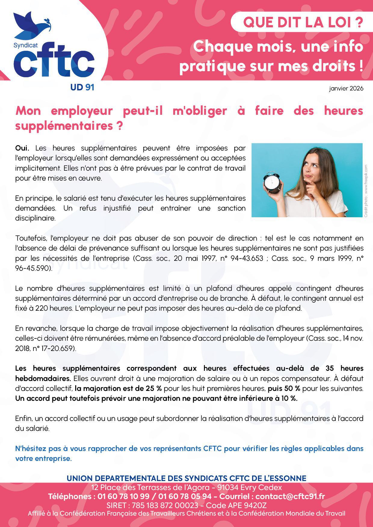 Chaque mois, ton Union Départementale CFTC de l'Essonne t'accompagne et t'informe sur tes droits.